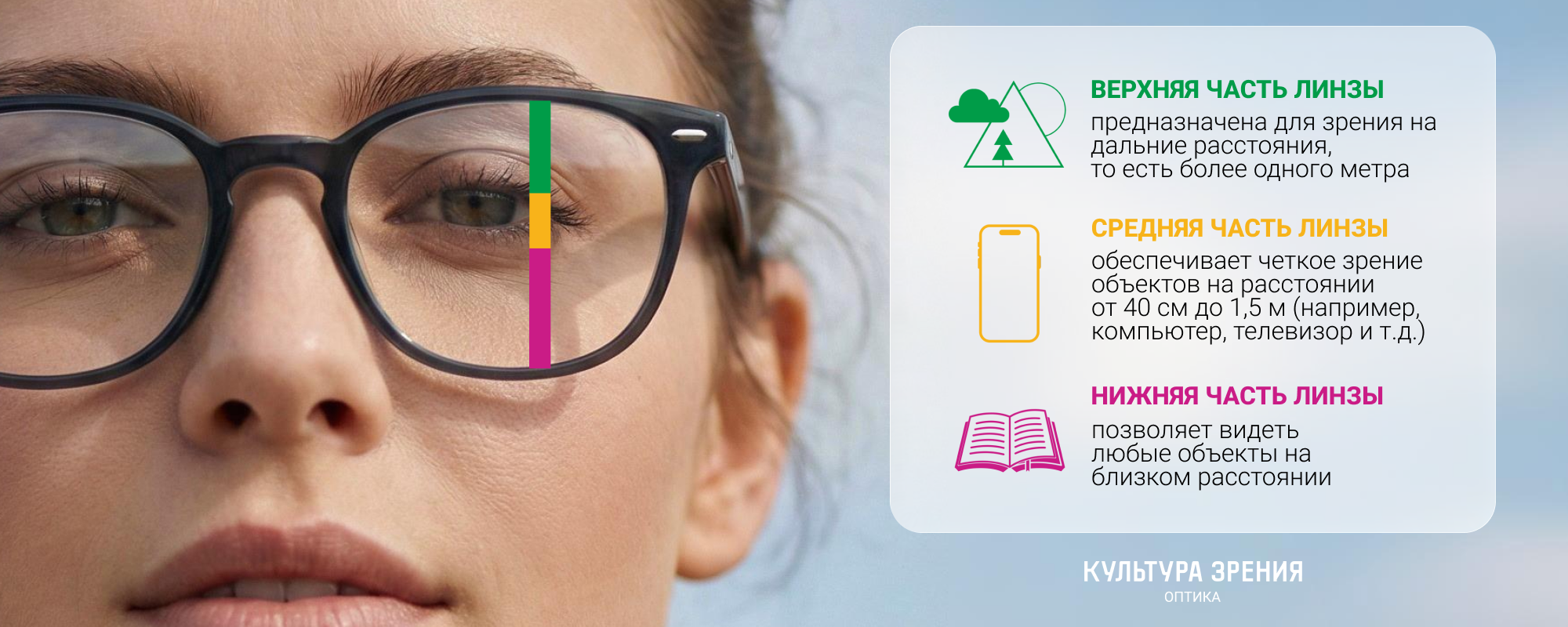 - Они обеспечивают четкость на разных расстояниях – от экрана до дороги.